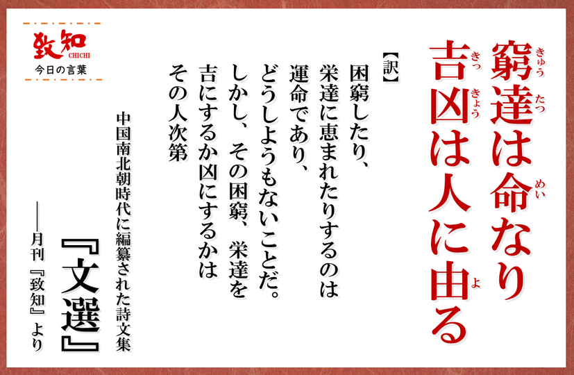 「窮達(きゅうたつ)は命(めい)なり、吉凶(きっきょう)は人に由(よ)る」